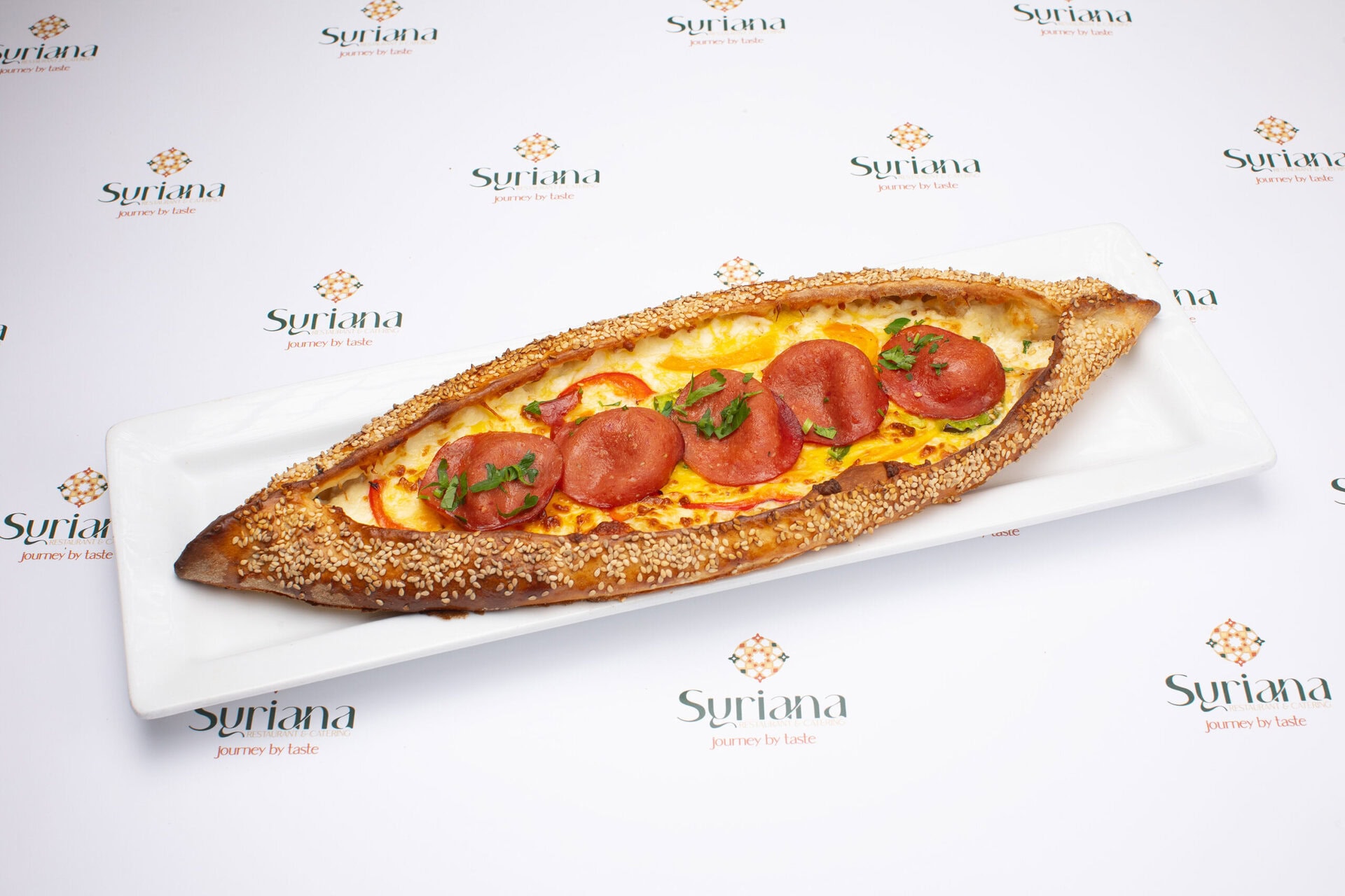 Freshly made flatbread topped with mixed cheeses, egg, bell pepper, and pepperoni or shawarma for $3. A full meal for breakfast.