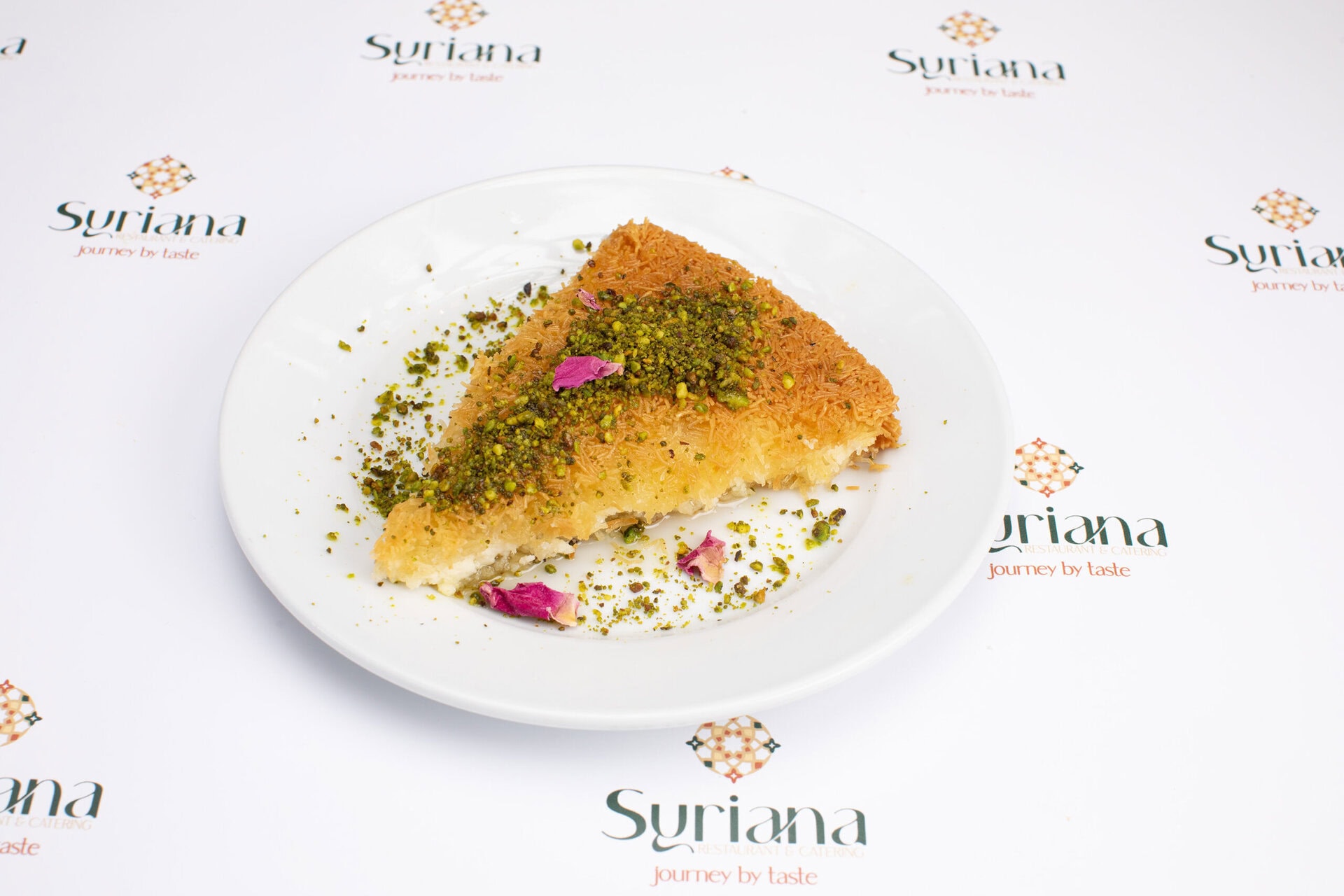 Layered shredded pastry soaked in ghee butter and sugar syrup with ricotta cheese.