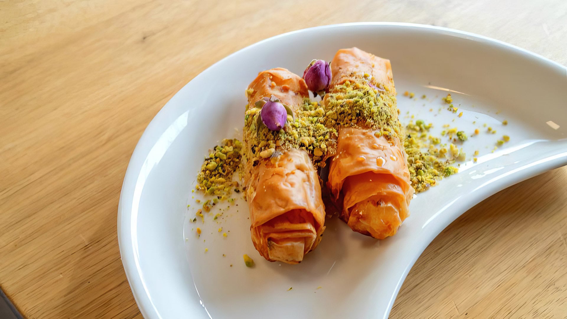 Riccota cheese finger baklava. Layered sweet pastry dessert made of filo pastry, filled with ricotta cheese.